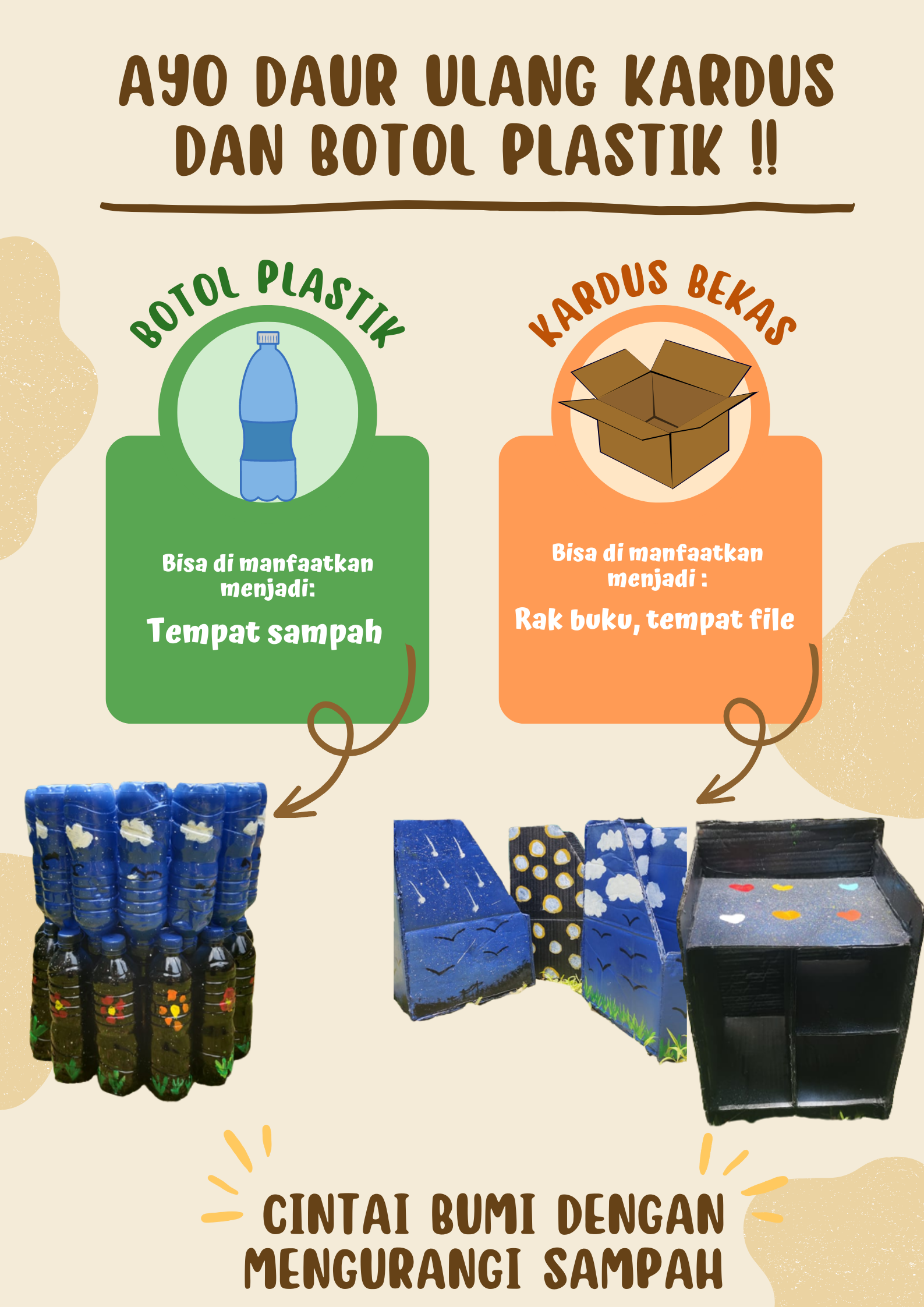Pemanfaatan Sampah Botol Plastik Dan Kardus, Menjadi Rak Buku, File Holder, Tempat Sampah